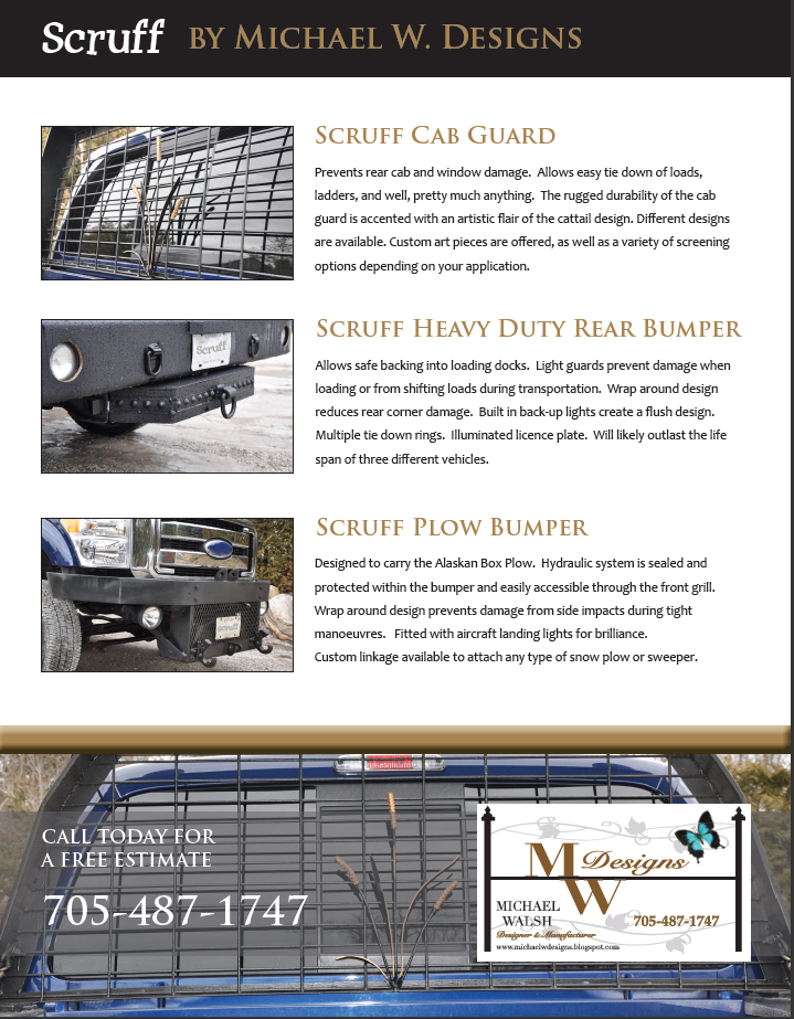 @ michaelwdesigns@hotmail.com or 705-487-1747